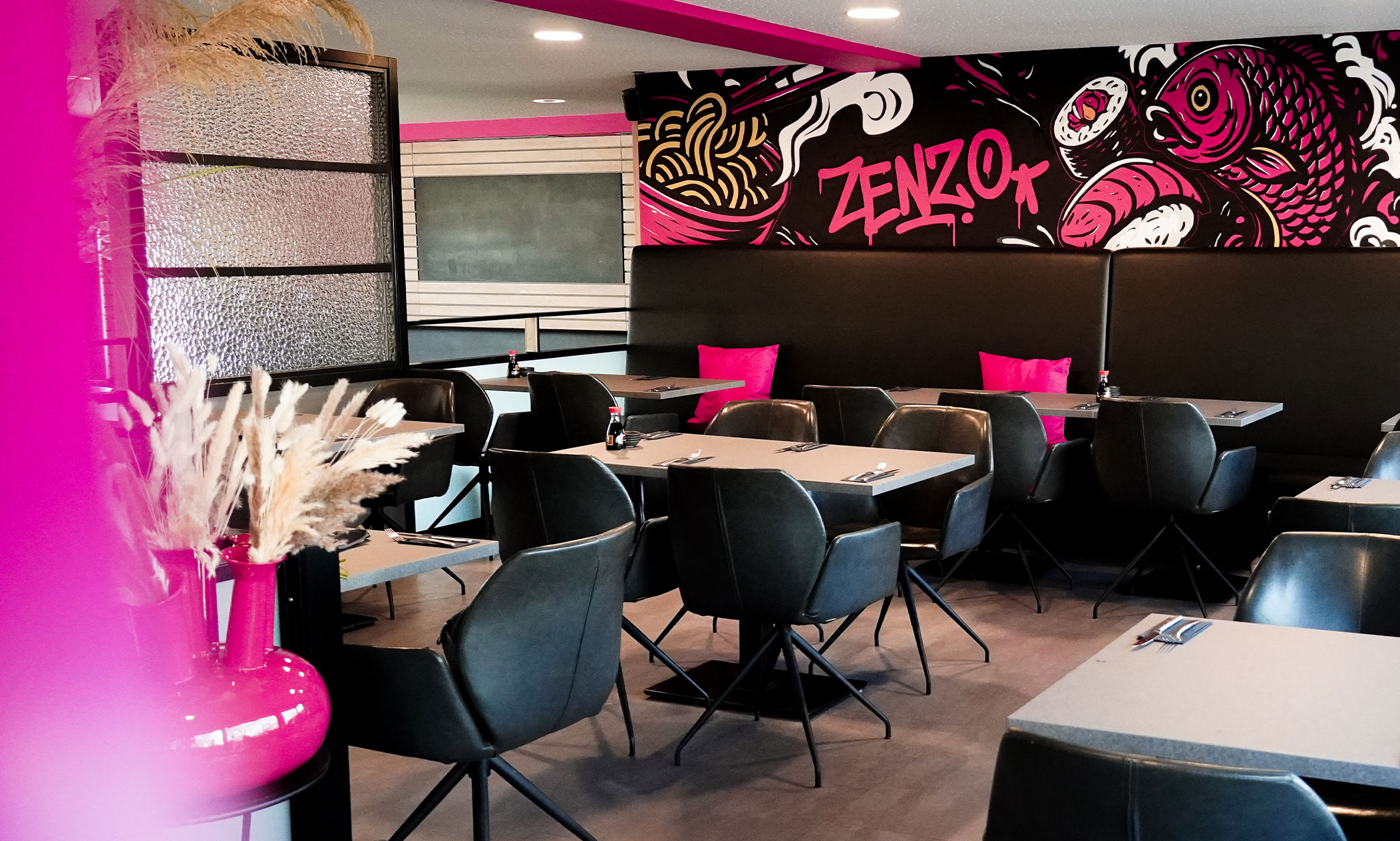 Für ZENZO – asian food & sushi entwickelten wir einen ganzheitlichen Markenauftritt, der Interior, Print- und Digitalmedien zu einem starken, unverwechselbaren Corporate Design verbindet. Zu Beginn des Projektes starteten wir mit einem umfassenden Moodboard, das erste Vorstellungen zu Schriften, Farbwelt, grafischen Akzente sowie Graffiti-Elemente für die Interior-Gestaltung zusammenfasste. Auf Basis dessen gingen wir in die Konzeption des asiatischen Restaurantbrandings.