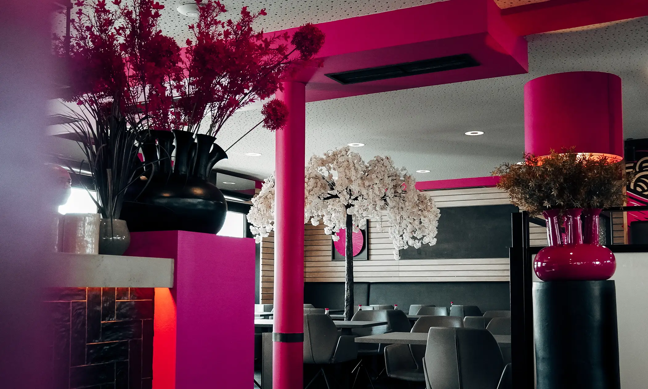 Die visuelle Sprache von ZENZO greift die Atmosphäre des Restaurants auf: ein reduziertes Zusammenspiel aus Schwarz-Weiß-Tönen, kombiniert mit markanten magentafarbenen Akzenten, die für Aufmerksamkeit sorgen und Wiedererkennung schaffen. Das Logo bildet dabei das Herzstück der Marke. Besonders prägnant ist das zweite „Z“, das als integrierte Bildmarke gestaltet wurde: Essstäbchen, die ein Nigiri halten, übersetzen das kulinarische Konzept direkt in eine klare, ikonische Form.